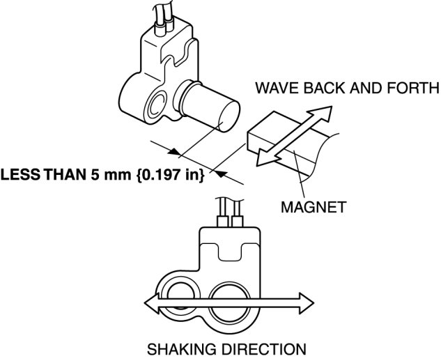 4. Measure the current while waving a magnet back and forth over the top of the VSS (less than 5 mm {0.197 in}).