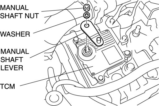 - Do not use an impact wrench. Hold the manual shaft lever when removing the manual shaft nut, or the transaxle may be damaged.