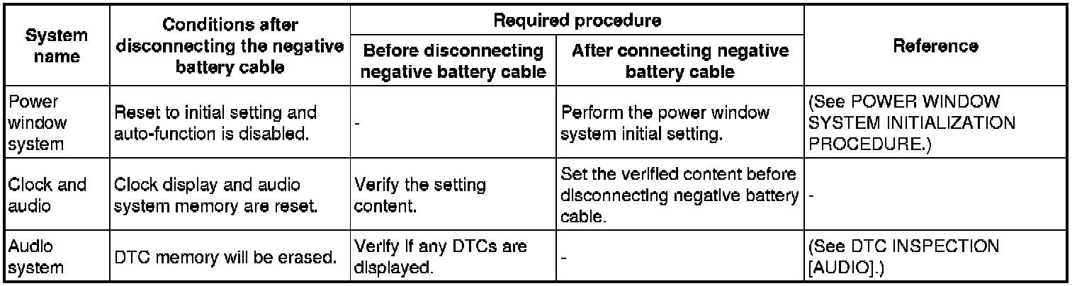 - Before removing the SRS air bag system-related parts, always disconnect the negative battery cable and wait for 1 min. or more to allow the back-up power supply to deplete its stored power.