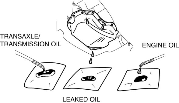 2. Tap off some engine oil and the following transmission/transaxle oil onto a white cloth or piece of paper as an oil sample.