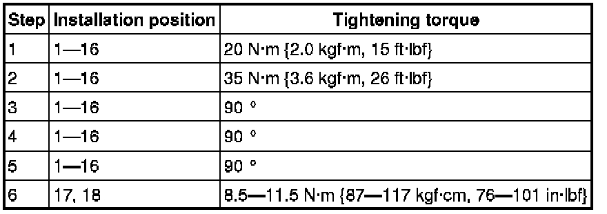 Cylinder Head Tightening Torque1. Tighten the cylinder head bolts in the order in 6 steps in the order shown in the figure.