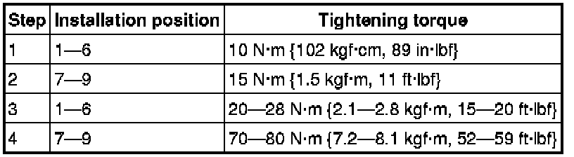 b.Tighten the engine front cover bolts in the order in 2 steps in the order shown in the figure.