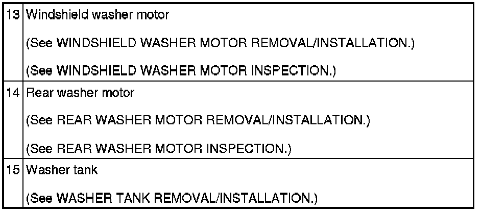 WIPER/WASHER SYSTEM LOCATION INDEX