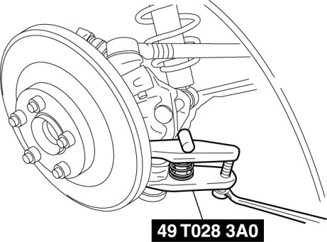- When removing the ball joints, the rear knuckle bushings may also come off. If they come off, replace the rear knuckle.