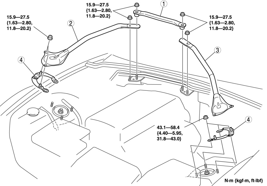 FRONT SUSPENSION TOWER BAR REMOVAL/INSTALLATION
