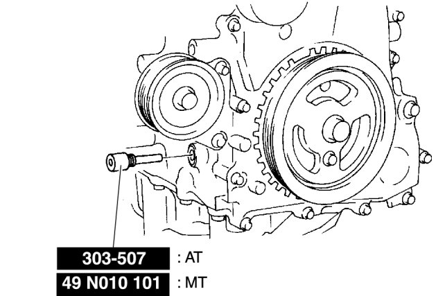 1. Temporarily install the crankshaft pulley and crankshaft pulley lock bolt to the crankshaft, and lock the oil pump against rotation as shown in figure.