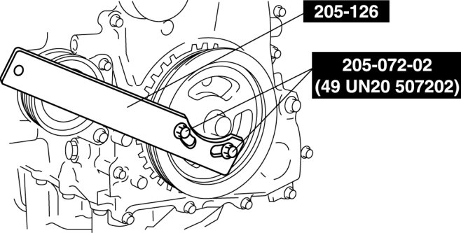4. Install the SSTs to the crankshaft pulley, lock the crankshaft against rotation.