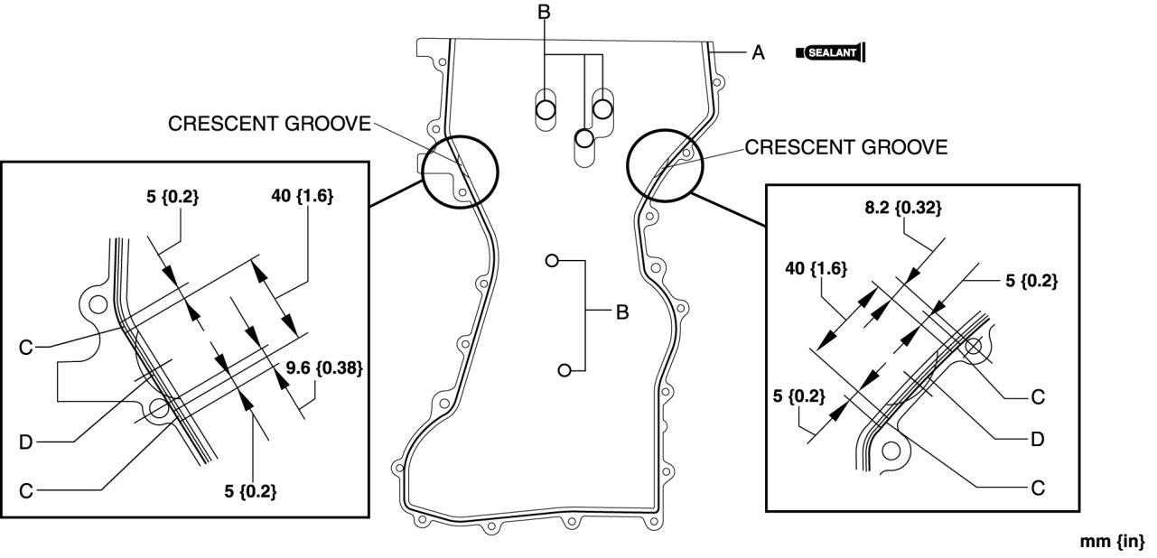 - Install the engine front cover before the applied silicone sealant starts to harden.