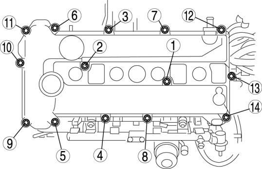 3. Tighten the bolts in the order shown. Tightening torque: 8.0-9.5 Nm {82-96 kgf-cm, 71-84 in-lbf}