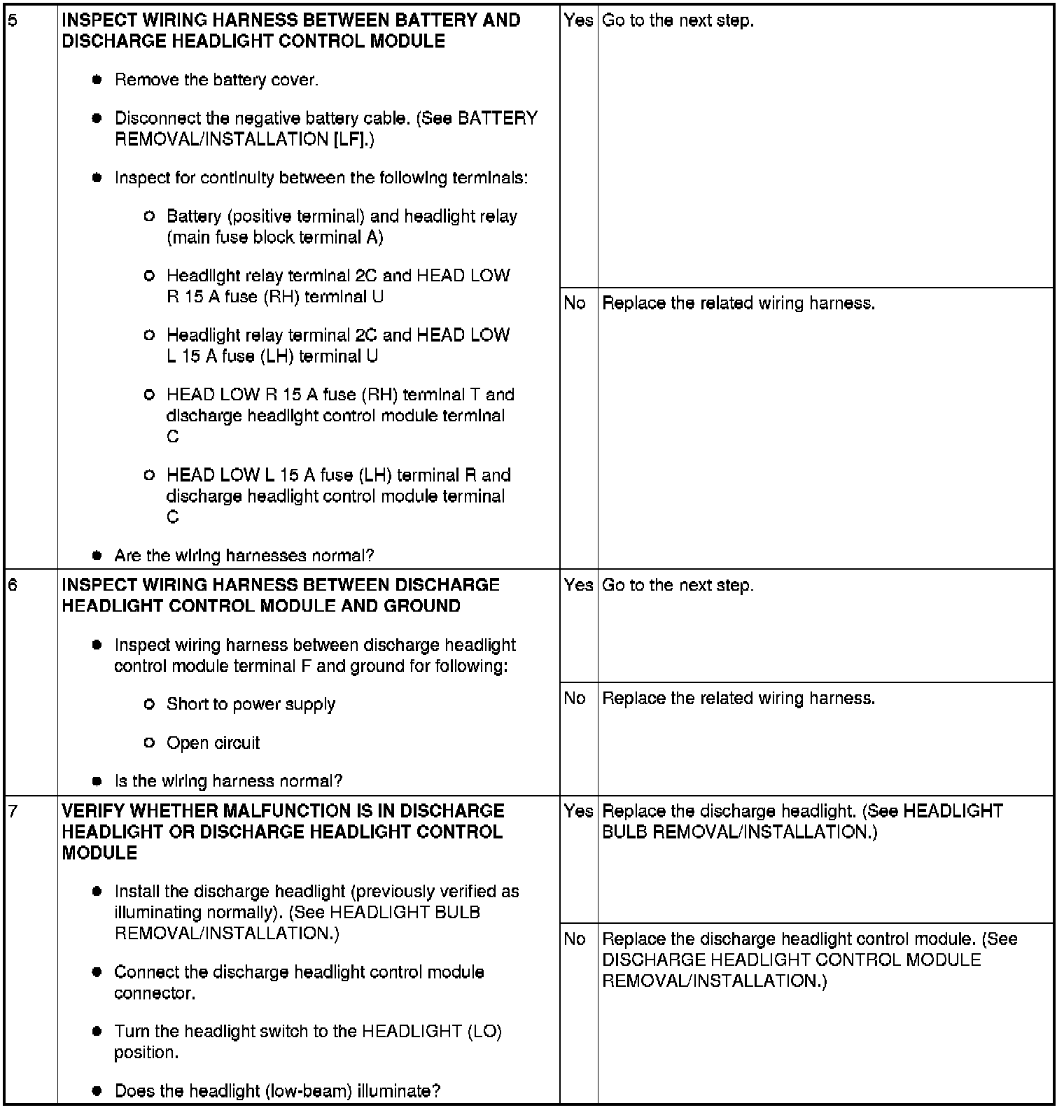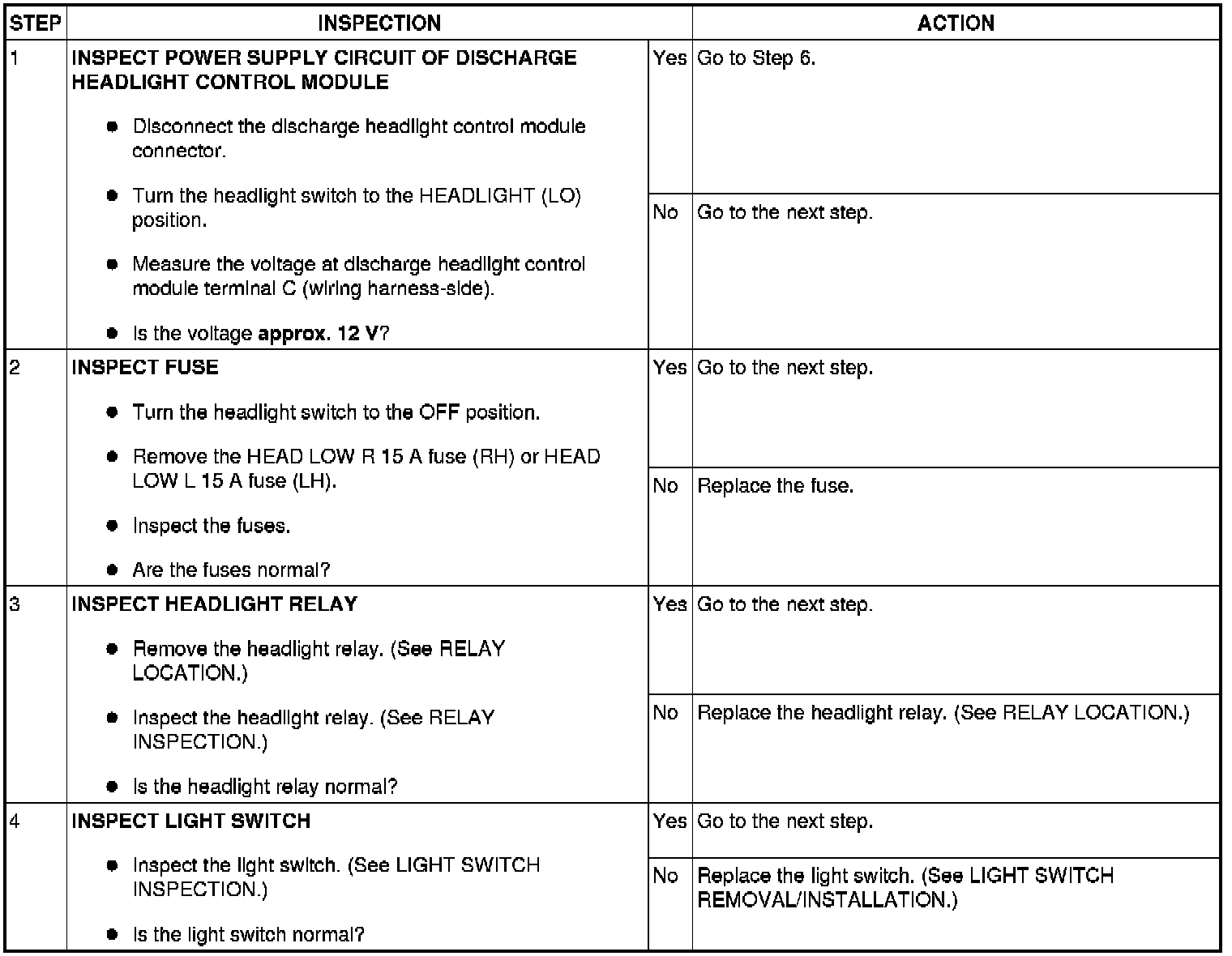 DISCHARGE HEADLIGHT SYSTEM INSPECTIONDischarge headlight inoperativeWARNING: -