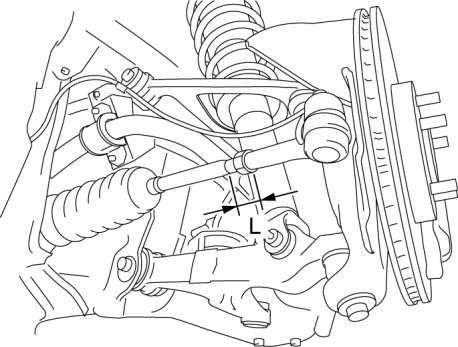 - Rotate and adjust the tie rod. The difference between the right and left dimension L shown in the figure should be within the specification.