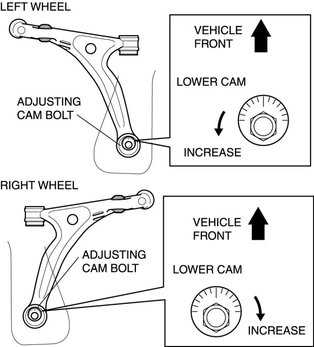 2. Rotate the adjusting cam bolt in either direction to adjust the camber.