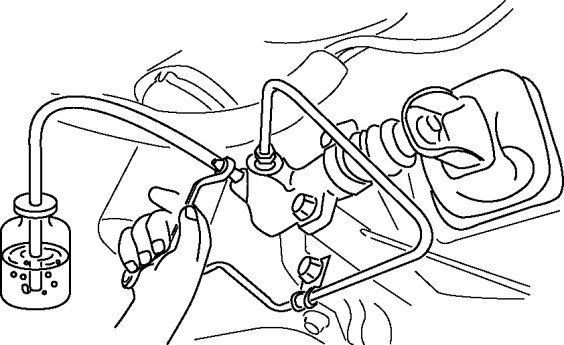 4. While the clutch pedal is being held down, the other person should loosen the bleeder screw, and bleed any fluid containing air bubbles. Once completed, tighten the bleeder screw.