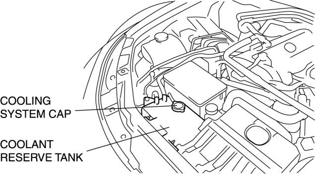 - Never remove the cooling system cap or loosen the radiator drain plug while the engine is running, or when the engine and radiator are hot. Scalding engine coolant and steam may shoot out and cause serious injury. It may also damage the engine and cooling system.
