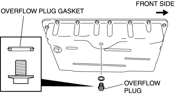 12. If ATF dripping is verified, install a new overflow plug gasket and overflow plug.