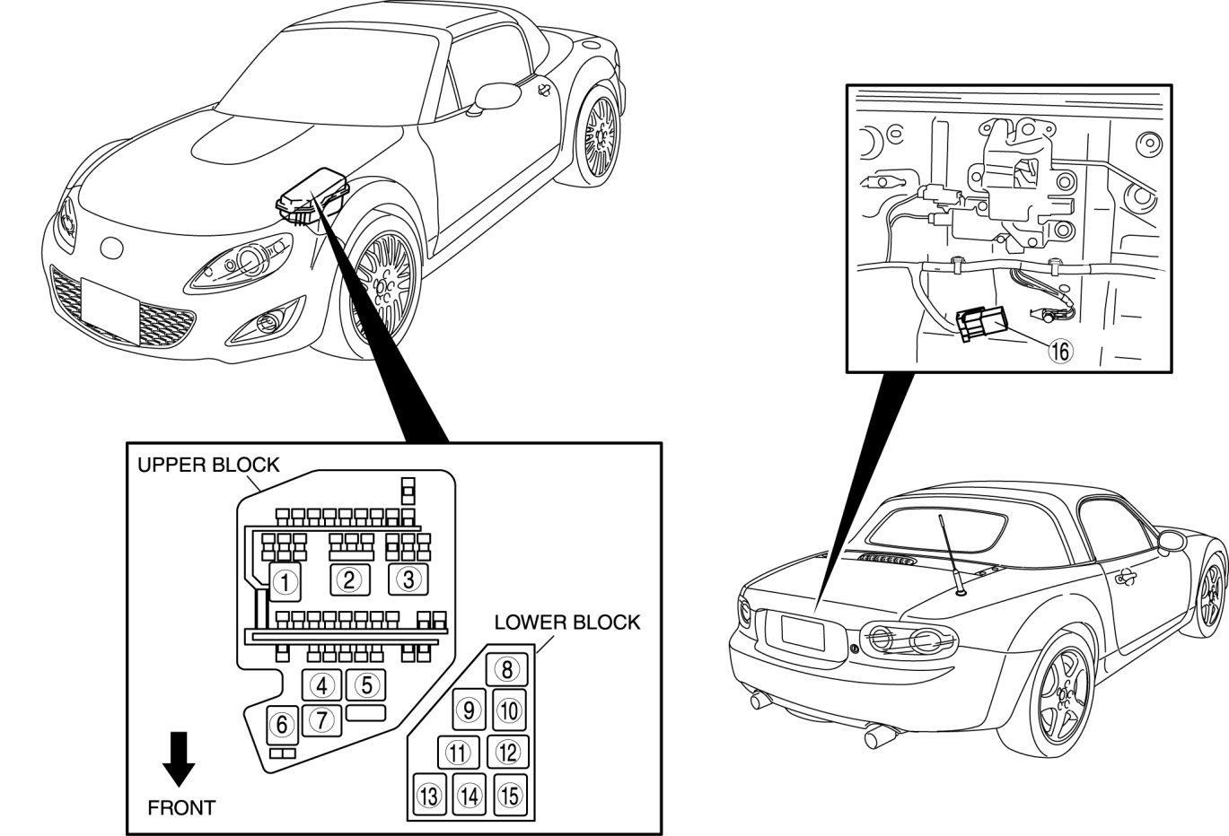 Main Relay (Computer/Fuel System): Locations