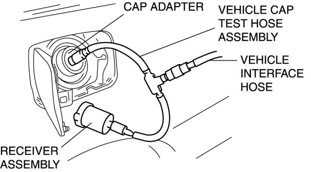 c. Connect the receiver assembly (SST: AKS441130) to the vehicle cap test hose assembly (part of the SST) and the fuel-filler cap from the vehicle.