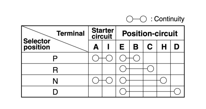 1. Verify that the starter operates only when the ignition switch is turned to the START position with the selector lever in the P or N position.