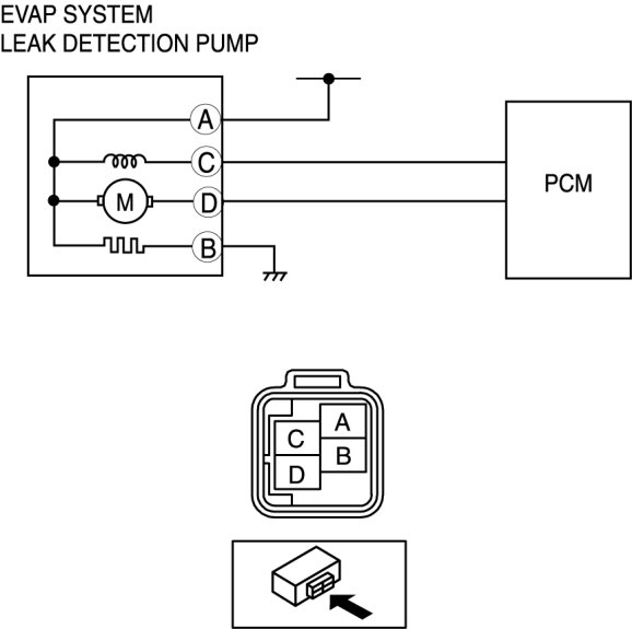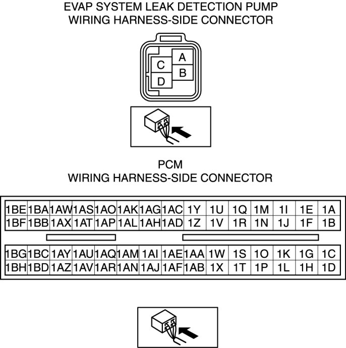 - EVAP system leak detection pump terminal D and PCM terminal 1U