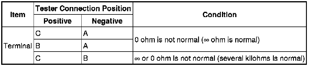 5. Measure the resistance between each terminal on the ignition coil connector using an analog circuit tester.