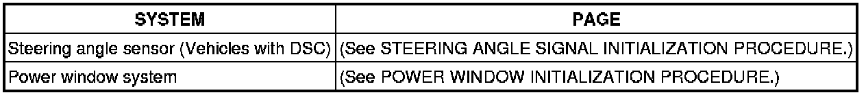 - Perform the following system initialization after disconnecting the negative battery cable.