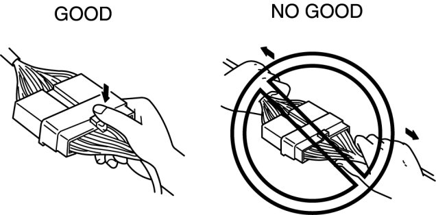 - Connectors can be disconnected by pressing or pulling the lock lever as shown.