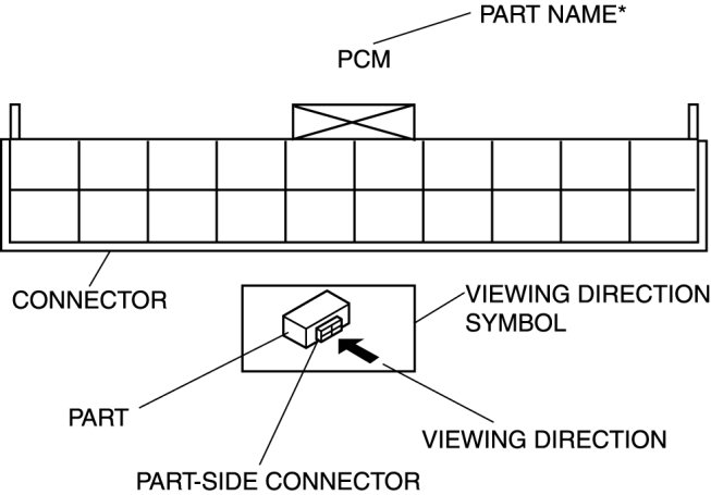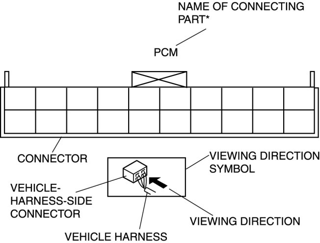 When it is necessary to show the terminal side of vehicle harness-side connectors, such as the following connectors, the viewing direction is from the terminal side.