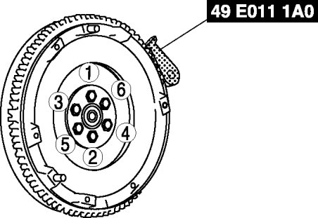 Gradually tighten the flywheel lock bolts in a crisscross pattern.