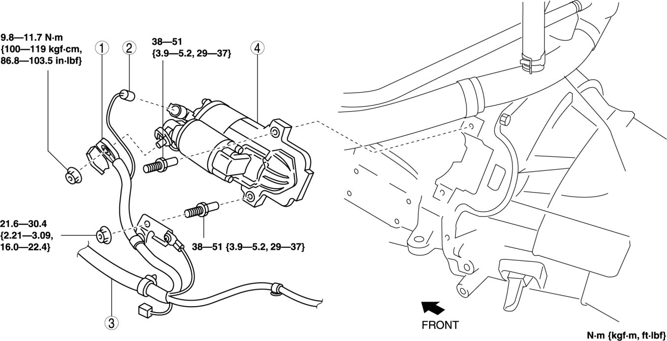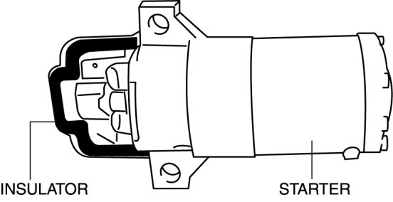 - When the battery cables are connected, touching the vehicle body with starter terminal B will generate sparks. This can cause personal injury, fire, and damage to the electrical components. Always disconnect the negative battery cable before performing the following operation.