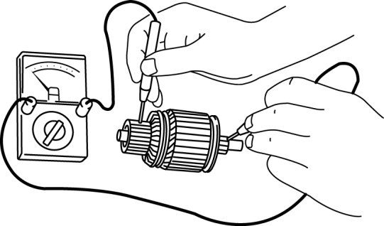 2. Verify that there is no continuity between the commutator and the shaft using a tester.