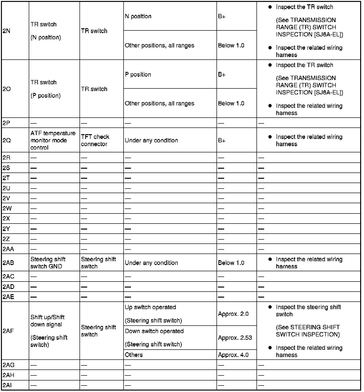 - Use the ground of terminal 1P and 1X of the TCM when measuring terminal voltage, as an error may occur when connecting the negative circuit tester to ground.