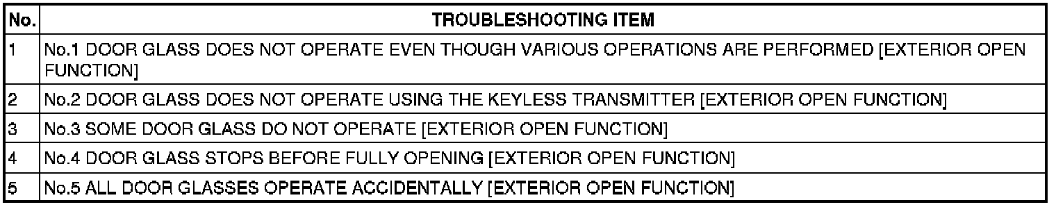 Symptom Troubleshooting Chart (Exterior Open Function):