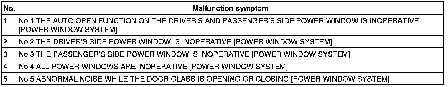 SYMPTOM TROUBLESHOOTING CHART [POWER WINDOW SYSTEM]