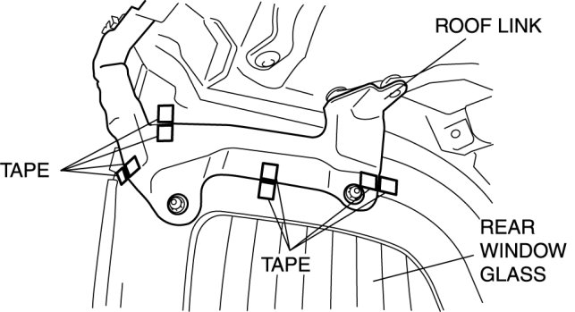 - Mark the roof link and rear window glass at 4 locations as shown in the figure.
