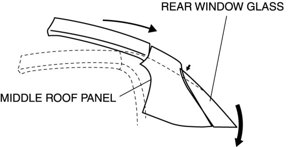 5. If the rear window glass or the middle roof panel is to be reused, remove it using the following procedure.