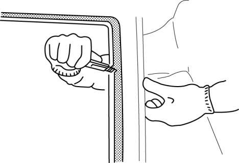 1. Remove the sealant along the perimeter of the glass using a cutting a razor. (When reusing the glass)