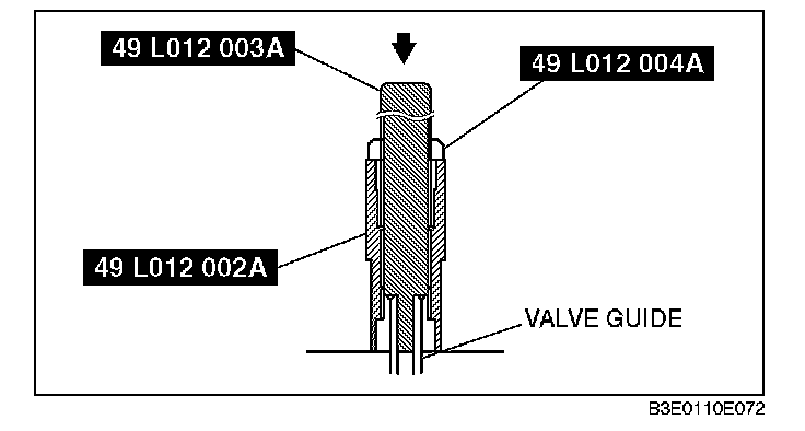 2. Tap the valve guide in from the cam side using the SSTs assembled in Step 1.
