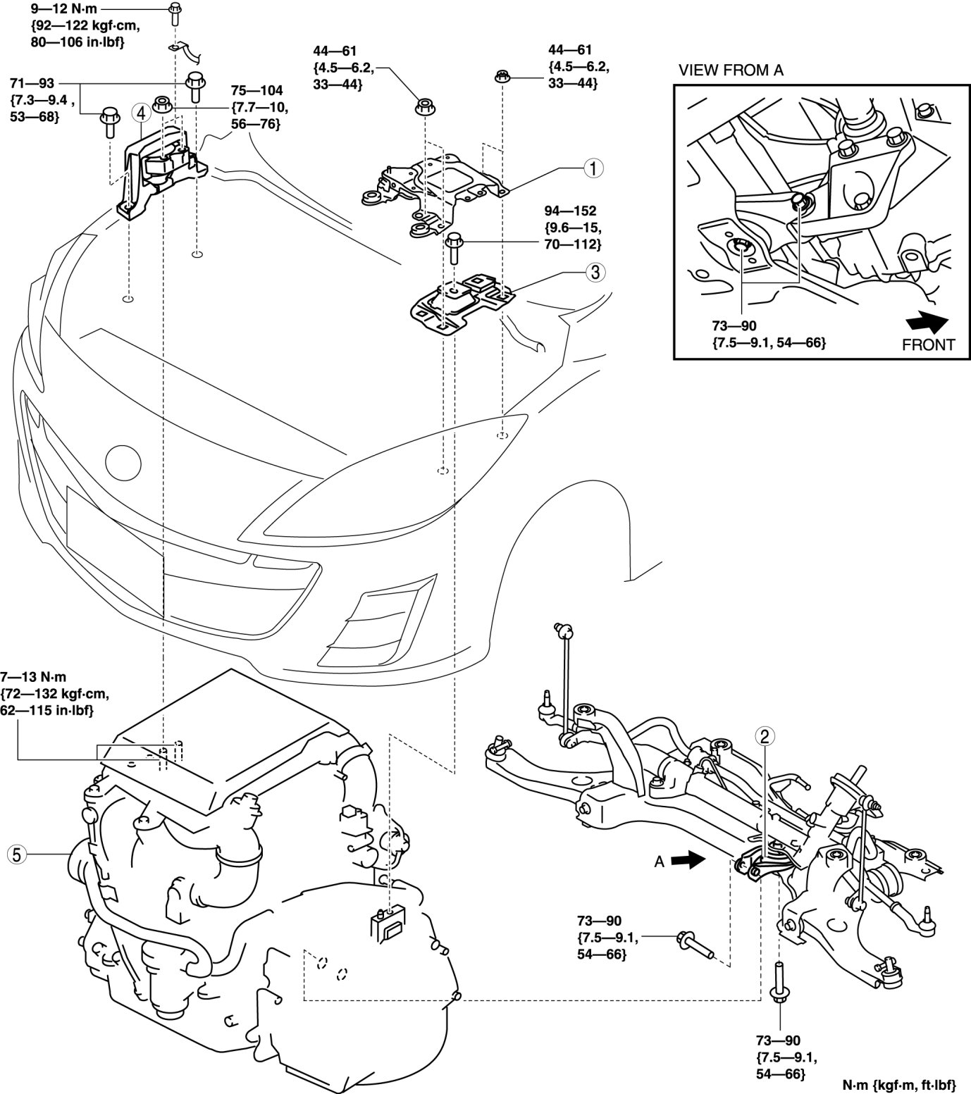 - No.1 engine mount bracket side: 65mm {2.6 in}