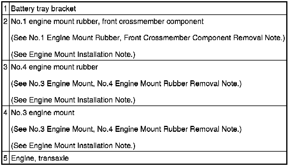 No.1 Engine Mount Rubber, Front Crossmember Component Removal Note