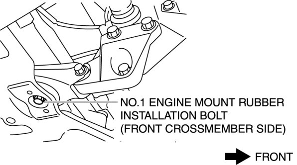 1. Loosen the No.1 engine mount rubber installation bolt (front crossmember side) shown in the figure.