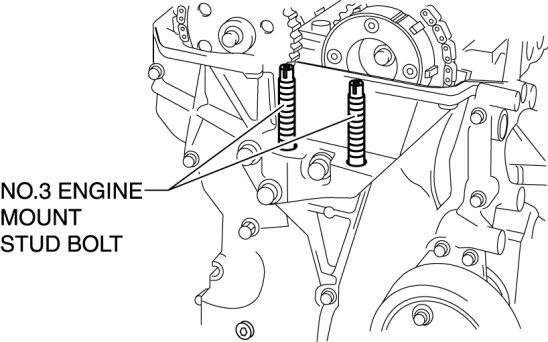 - Retighten the No.3 engine mount stud bolts when the No.3 engine mount nuts are loosened.