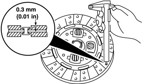 - If it is less than the minimum specification, replace the clutch disc.
