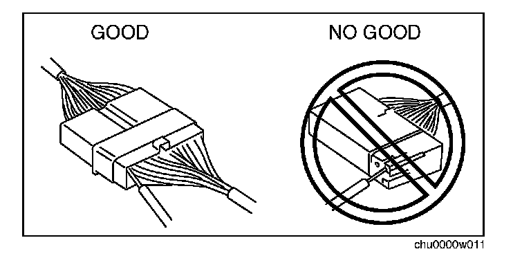 Caution: To prevent damage to the terminal, wrap a thin wire around the tester probe before inserting into terminal.