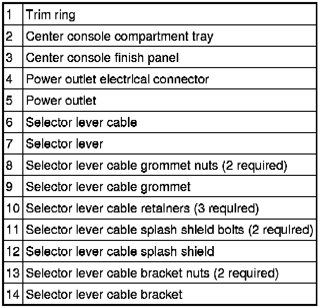 15. Remove the selector lever cable end from the manual lever, remove the selector lever cable bracket nuts and remove the selector lever cable assembly.