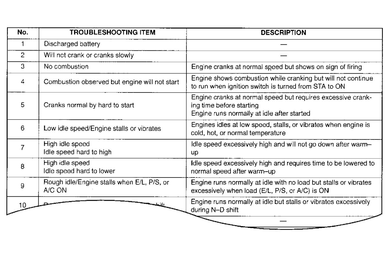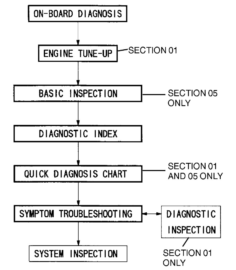 - Symptom troubleshooting shows diagnostic procedures, inspection methods, and proper action to take for each trouble symptom.
