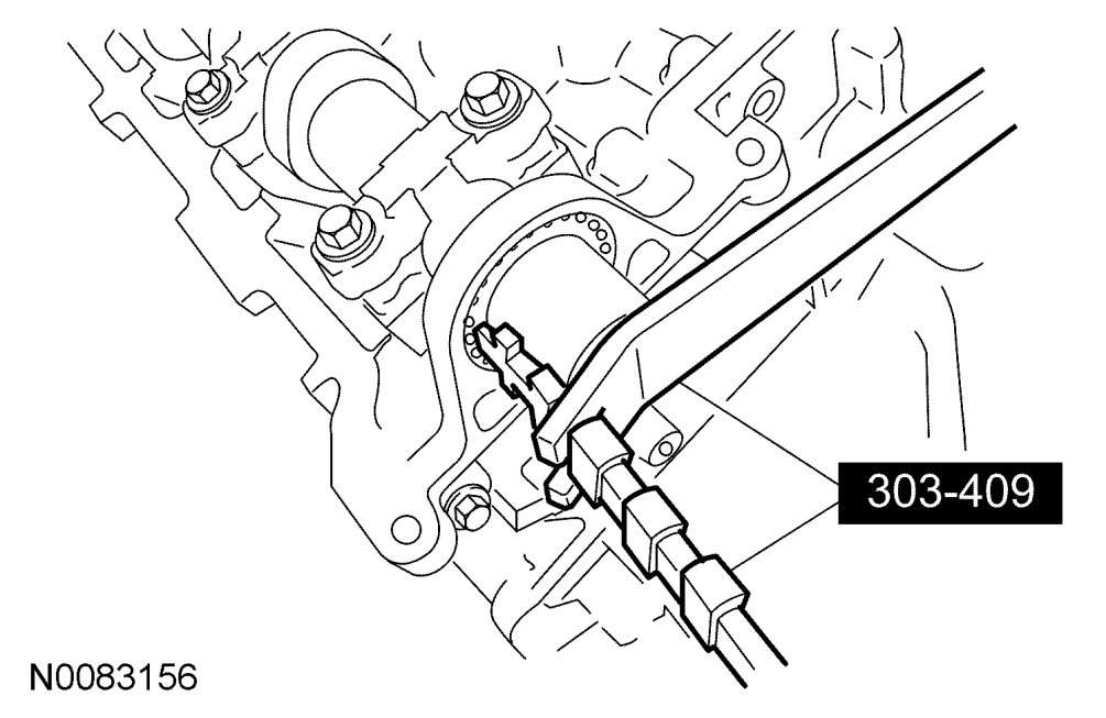 NOTE:Install a 3/8-in ratchet and extension into the D-slot on the rear of the intake camshaft to hold the camshaft in place for removal of the camshaft phaser and sprocket bolts.