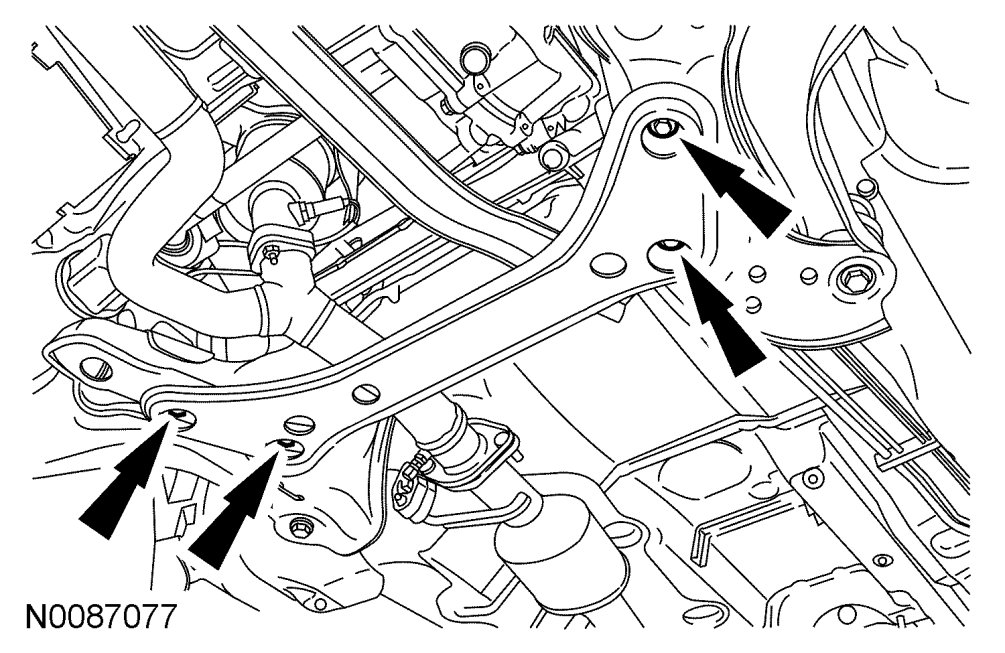 - Tighten the 2 cross brace bolts to 90 Nm {9.2 kgf-m, 66 ft-lbf}.
