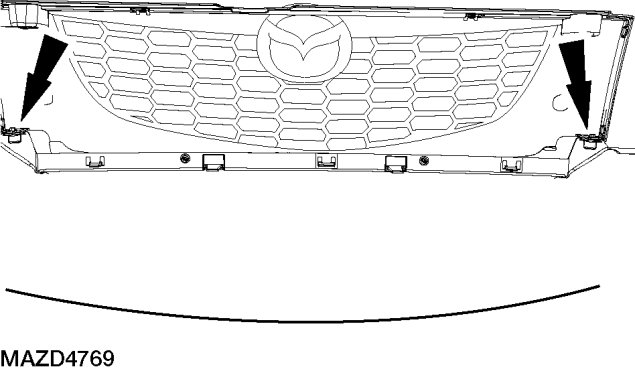 4. Release the 3 radiator grille retaining clips and remove the radiator grille from the fascia.