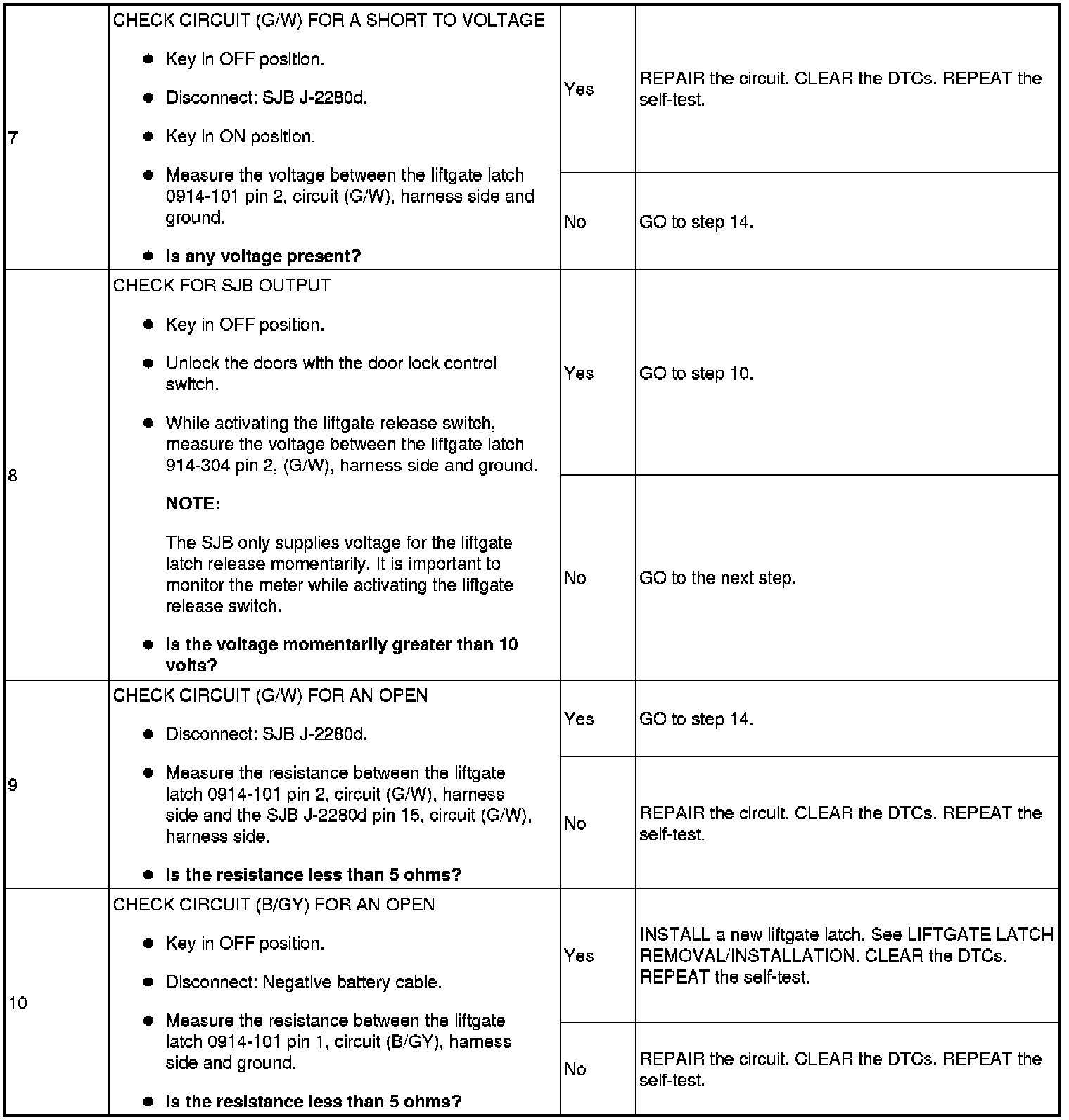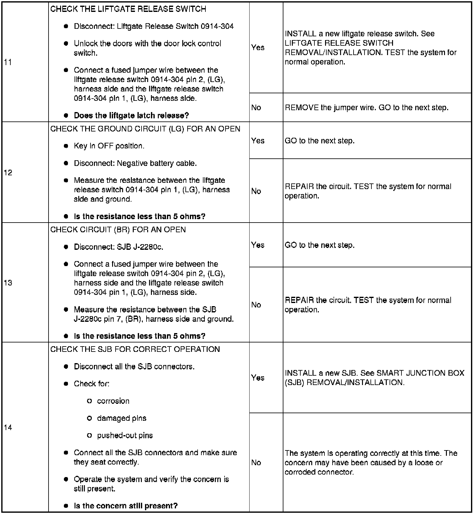 PINPOINT TEST 6: THE LIFTGATE LATCH RELEASE IS INOPERATIVE/DOES NOT OPERATE CORRECTLY