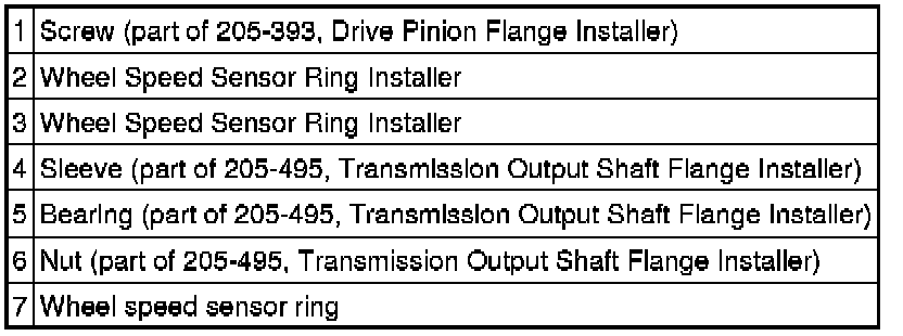 1. Install the new ABS wheel speed sensor ring and the tools on the halfshaft as shown in the previous illustration.